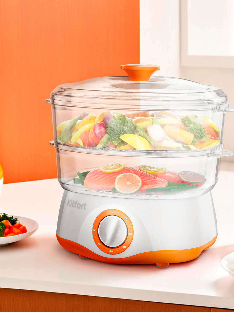 Пароварка КТ-6452 приготовит вам вкусные и питательные блюда, сохранив все полезные витамины и микроэлементы, содержащиеся в продуктах. Продукты, приготовленные в пароварке, получаются нежными, мягкими и сочными.