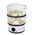 Двухуровневая пароварка для приготовления на пару разнообразных продуктов и блюд для поддержания здорового образа жизни и отличной формы. Пароварка снабжена 0.5-литровой чашей для воды и двумя 2.5-литровыми прозрачными резервуарами для продуктов, оборудованными ручками для более удобного перемещения. Приготовление на пару сводит к минимуму уровень холестерина в продуктах, приготовленных посредством жарки. Пароварка сохраняет питательные вещества овощей, мяса, птицы и рыбы, их натуральный вкус и аромат, обеспечивает самый деликатный способ тепловой обработки, что особенно важно для придерживающихся диеты людей. Пароварка имеет механическое управление, при помощи которого легко задаются все необходимые параметры для приготовления пищи на пару. Функция таймера позволит установить желаемое время приготовления продуктов в пароварке до 60 минут и больше не отвлекаться на контроль за ее работой вплоть до момента готовности. Пароварка снабжена надежной системой защиты прибора, исключающей возникновение опасных ситуаций, в том числе, связанных с недостаточным количеством воды.