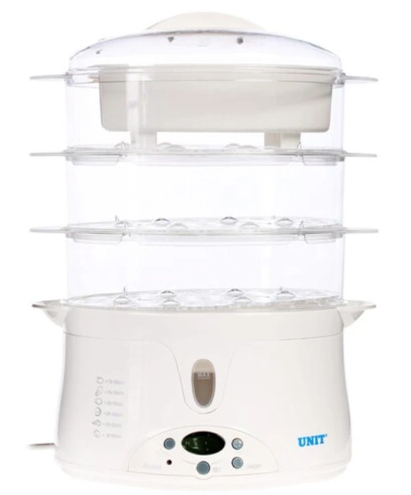 Пароварка Unit USC-140 с жидкокристаллическим дисплеем позволит вам установить время приготовления любого блюда с точностью до одной минуты.