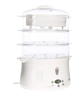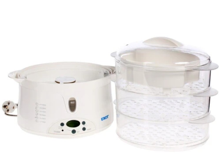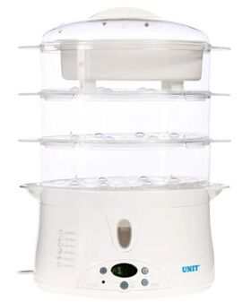 Модель Unit USC-140 хороша и тем, что оснащена тремя ярусами, общий объем которых составляет 7,2 литра. Микроперфорированные решетки этой пароварки обеспечат максимальное проникновение пара в каждый из ярусов.