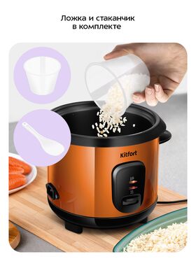 Компактная рисоварка КТ-232 впишется даже в небольшую кухню. Работая от сети, она сочетает эргономичный дизайн с удобством использования – просто подключите, добавьте рис и наслаждайтесь безупречным результатом!