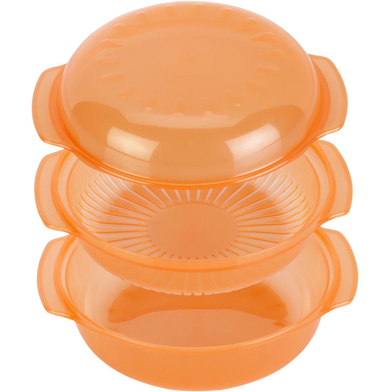 БЫСТРО И ПРОСТОВместе с изделием поставляется брошюра с подробными инструкциями по его использованию и рецептами разнообразных блюд, в том числе десертов. За считаные минут вы получите вкусную и полезную пищу. Диаметр контейнера – 21,5 см, в среднем он рассчитан на четыре порции. Для удобства переноса все элементы снабжены ручками. Утварь выполнена из пластика и легко отмывается вручную или в посудомоечной машине.