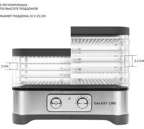 5 регулируемых по высоте съемных секций позволяют разместить в небольшом объеме максимум продуктов и добиться их наилучшего распределения для быстрого и равномерного высушивания.