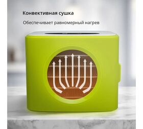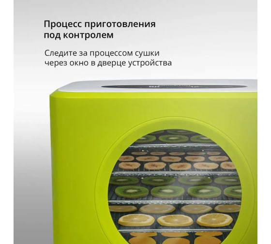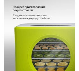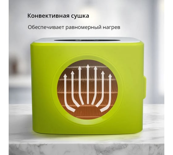 Конвективная сушка обеспечивает равномерное высушивание продуктов на всех 5 уровнях, предотвращает перепады температуры внутри дегидратора и обеспечивает сохранение вкусовых качеств продуктов.