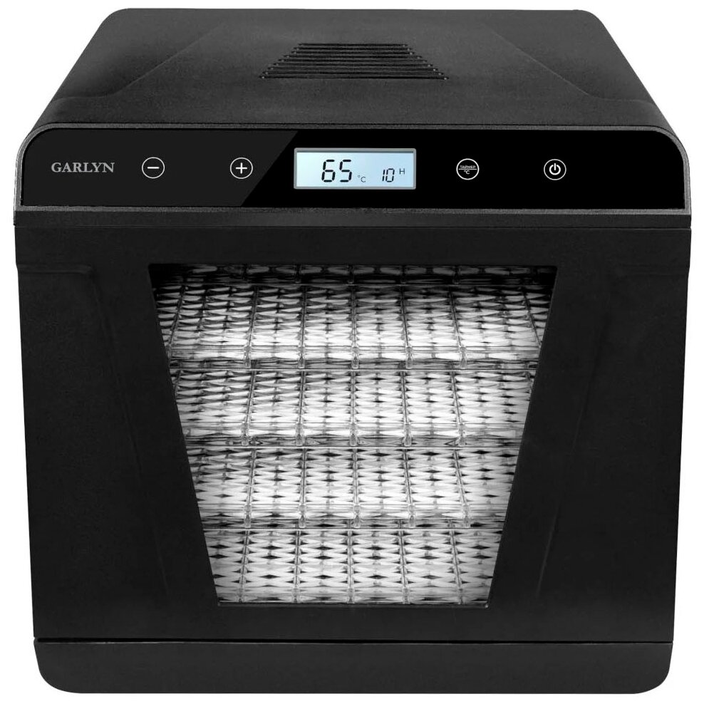 Garlyn D-09 обладает продуманной конструкцией и компактными размерами, благодаря чему она не занимает много места на кухонном столе. Корпус и поддоны сушилки выполнены из пластика, а для управления предусмотрена сенсорная панель и дисплей. В комплекте поставляется 6 съемных поддонов, а также поддоны для приготовления пастилы и сушки трав.