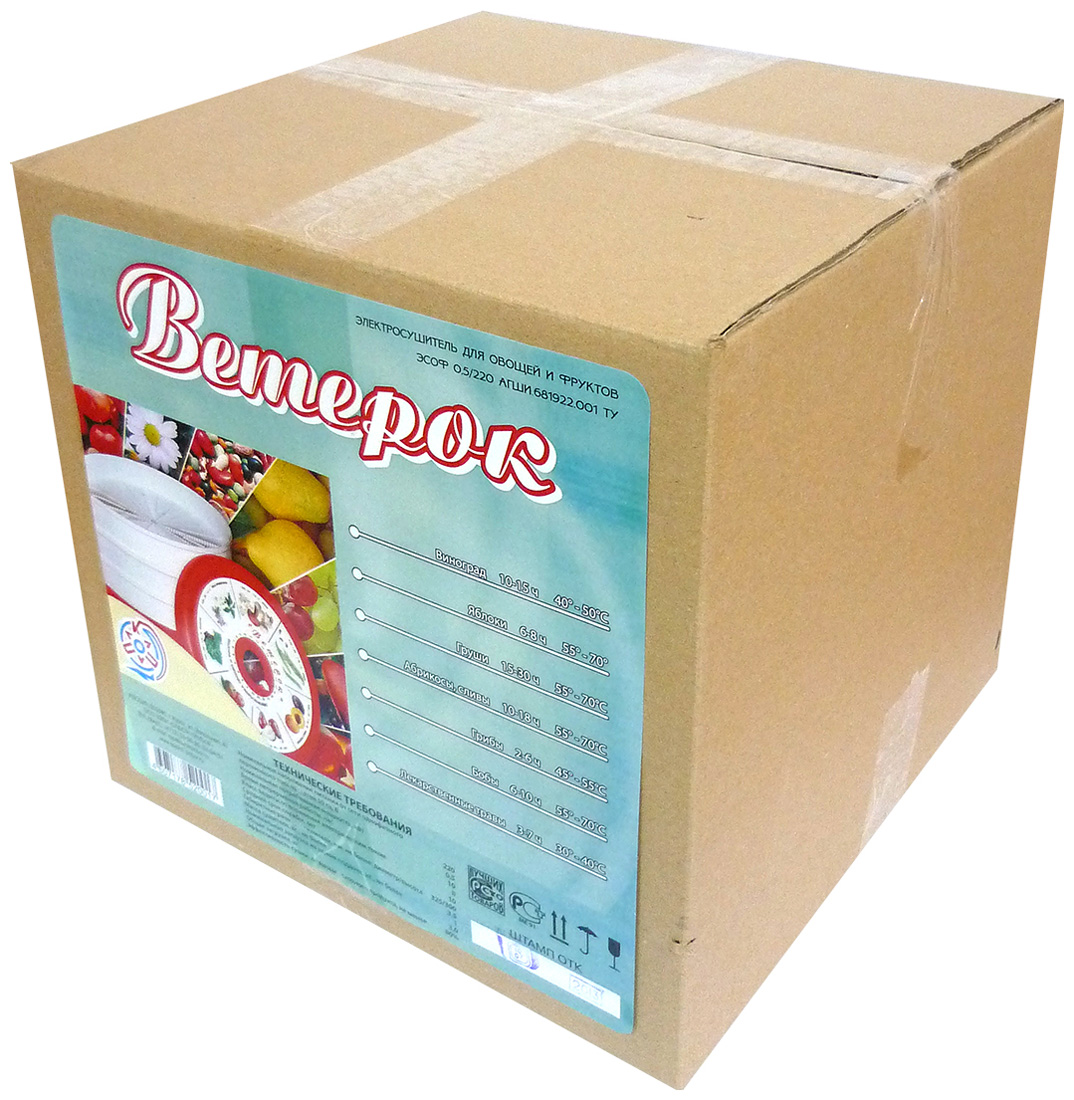 Температура воздуха на нижнем поддоне электросушителя: 60±10 °С