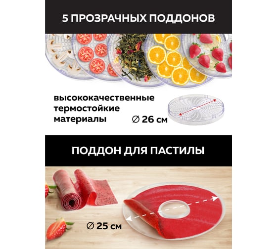 Электрическая сушилка для овощей и фруктов GFGRIL GFD-002 - компактная и универсальная помощница на кухне, которая поможет быстро, вкусно и безопасно приготовить любимые снеки и закуски.
