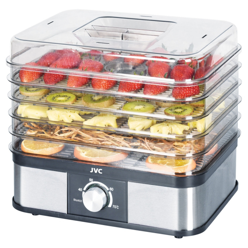 При помощи электросушики JVC вы сможете без труда приготовить полезные заготовки на зиму из овощей, фруктов, грибов и зелени.