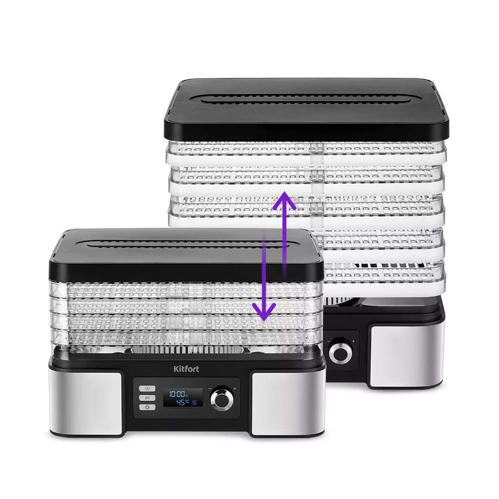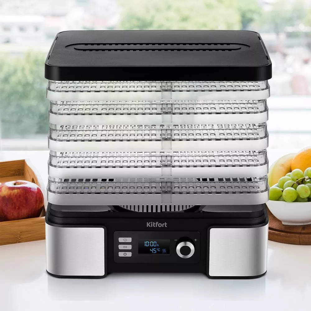 Все поддоны легко снимаются и моются после сушки. Сушилка для овощей и фруктов КТ-1957 имеет компактные размеры, а благодаря стильному дизайну впишется в любой кухонный интерьер.
