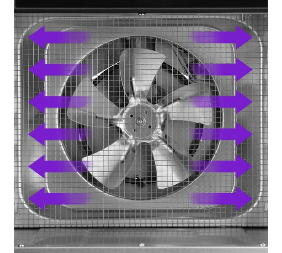 В сушилке установлен мощный нагревательный элемент и вентилятор с лопастями большого диаметра, обеспечивающий равномерное распределение нагретого воздуха по всему объему камеры. Благодаря горизонтальному обдуву смешение запахов при сушке одновременно разных продуктов минимально.