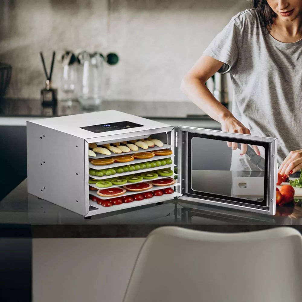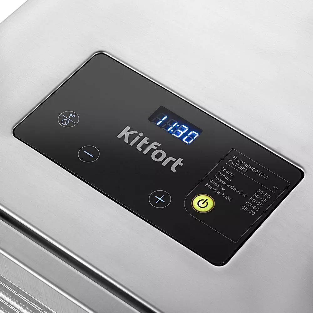 Сушилка для овощей и фруктов Kitfort KT-9172 имеет строгие формы и минималистичный, стильный дизайн. Прибор идеально впишется в интерьер вашей кухни. Через стекло в дверце можно следить за процессом сушки любимых продуктов.