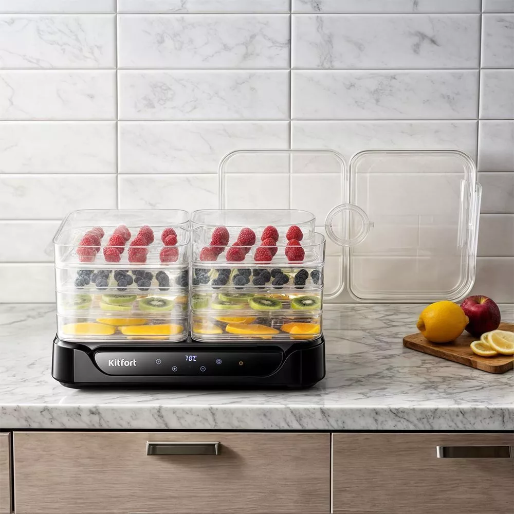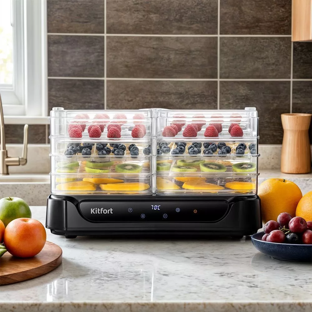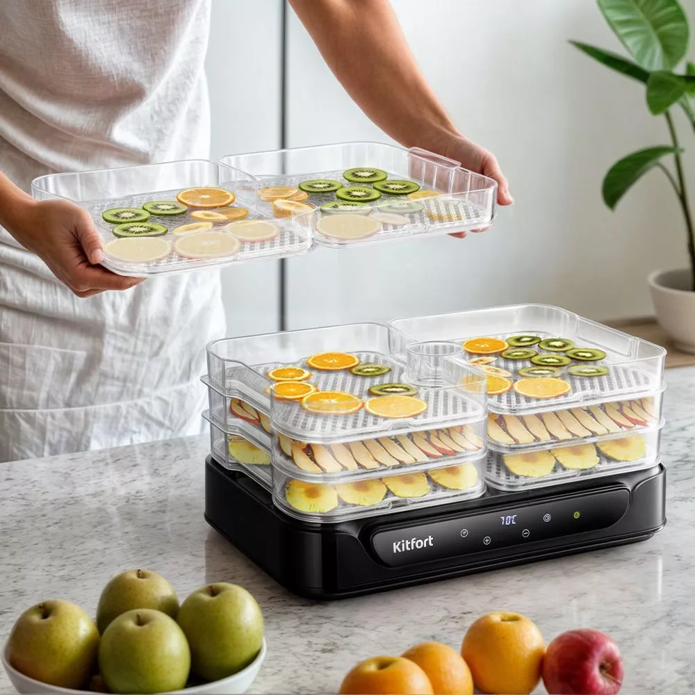 Сушилка для овощей и фруктов — ваш идеальный помощник для создания здоровых закусок. Компактная и удобная в использовании, она позволяет приготовить натуральные сушёные продукты без добавок прямо у вас дома.