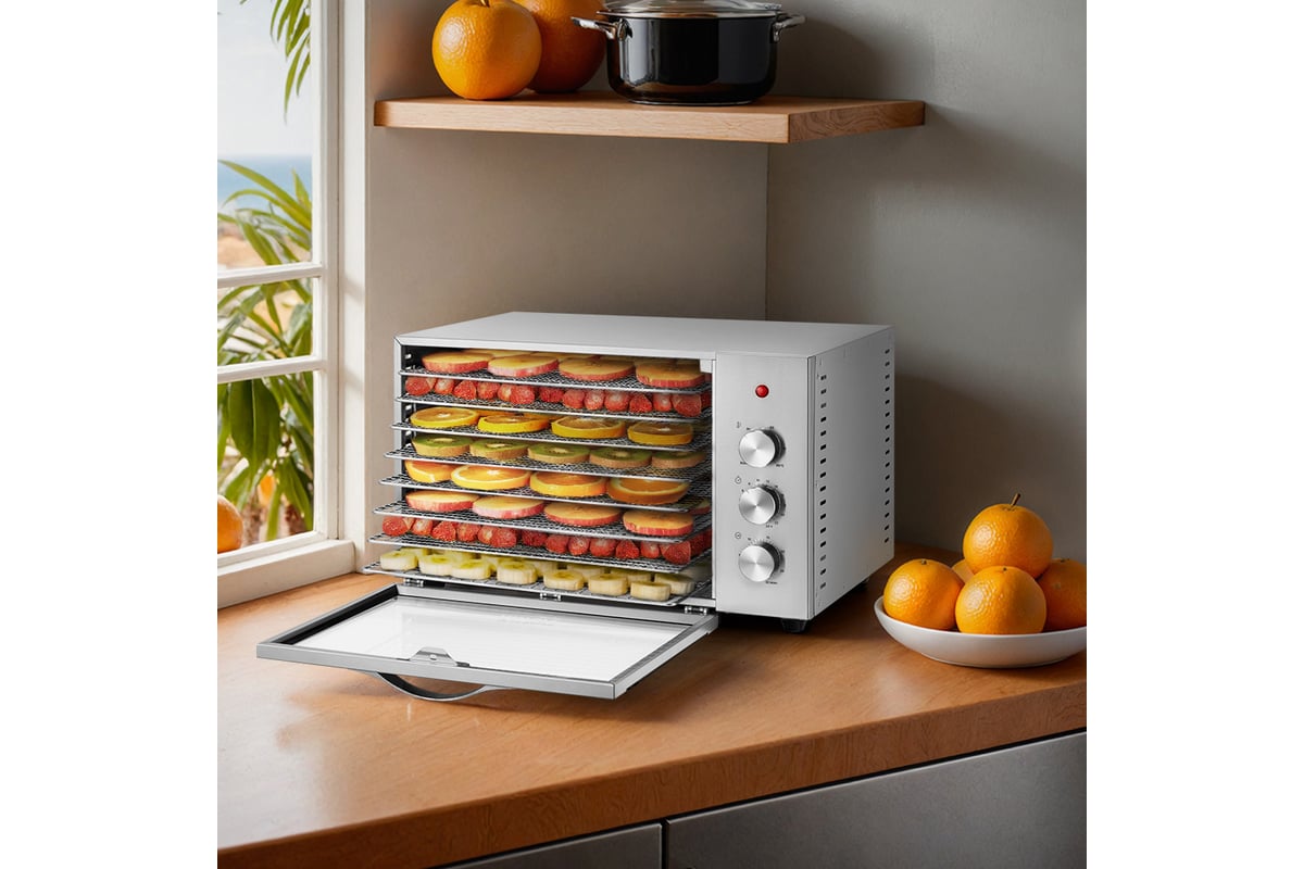 Электрическая сушилка предназначена для сушки овощей, фруктов, ягод, грибов, корнеплодов, трав и зелени, а также мяса и рыбы, хлеба. С помощью специальных сплошных поддонов можно готовить пастилу.