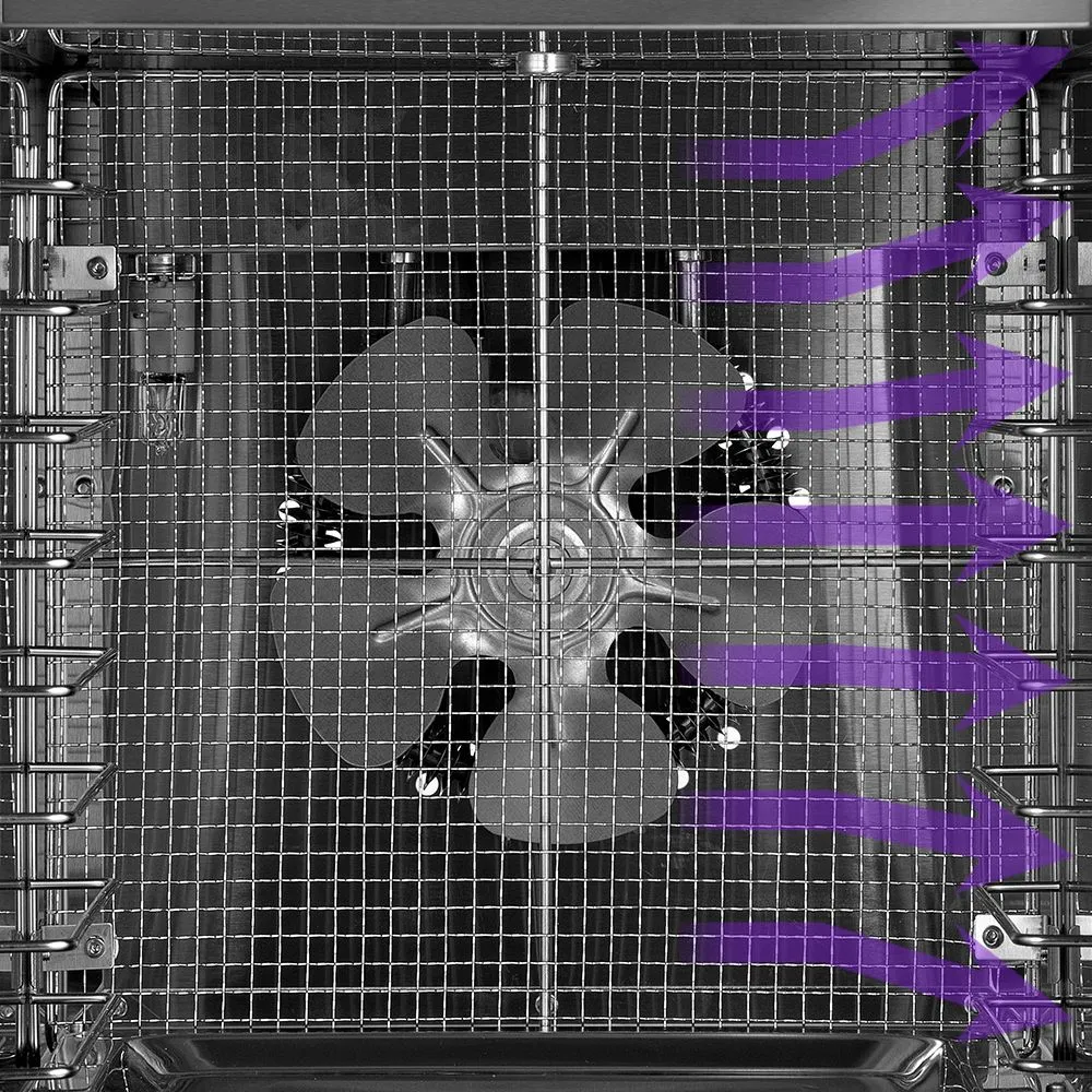 В сушилку установлен мощный нагревательный элемент и вентилятор, обеспечивающий равномерное распределение нагретого воздуха по всему объёму камеры. Благодаря горизонтальному обдуву смешение запахов при одновременной сушке разных продуктов минимально.
