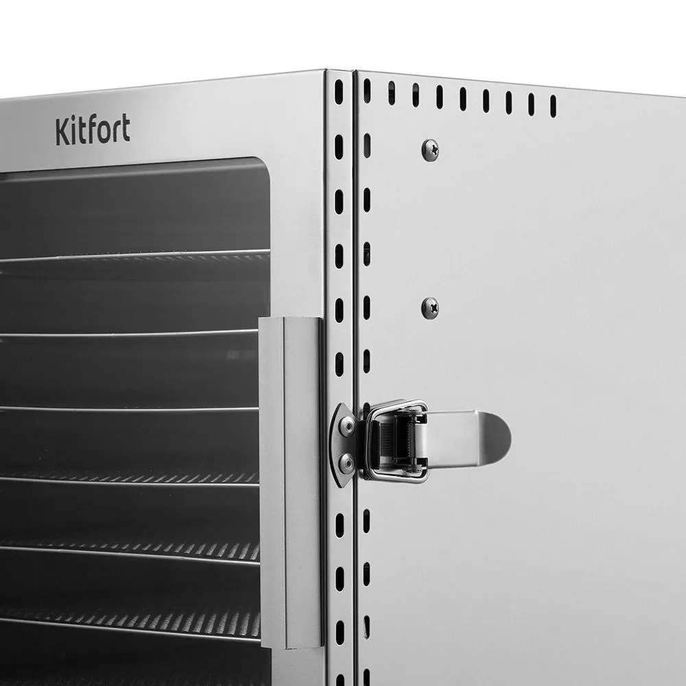 Удобный фиксатора плотно держит дверцу сушилки для овощей и фруктов КТ-1998, тем самым сохраняя качество сушки продуктов.