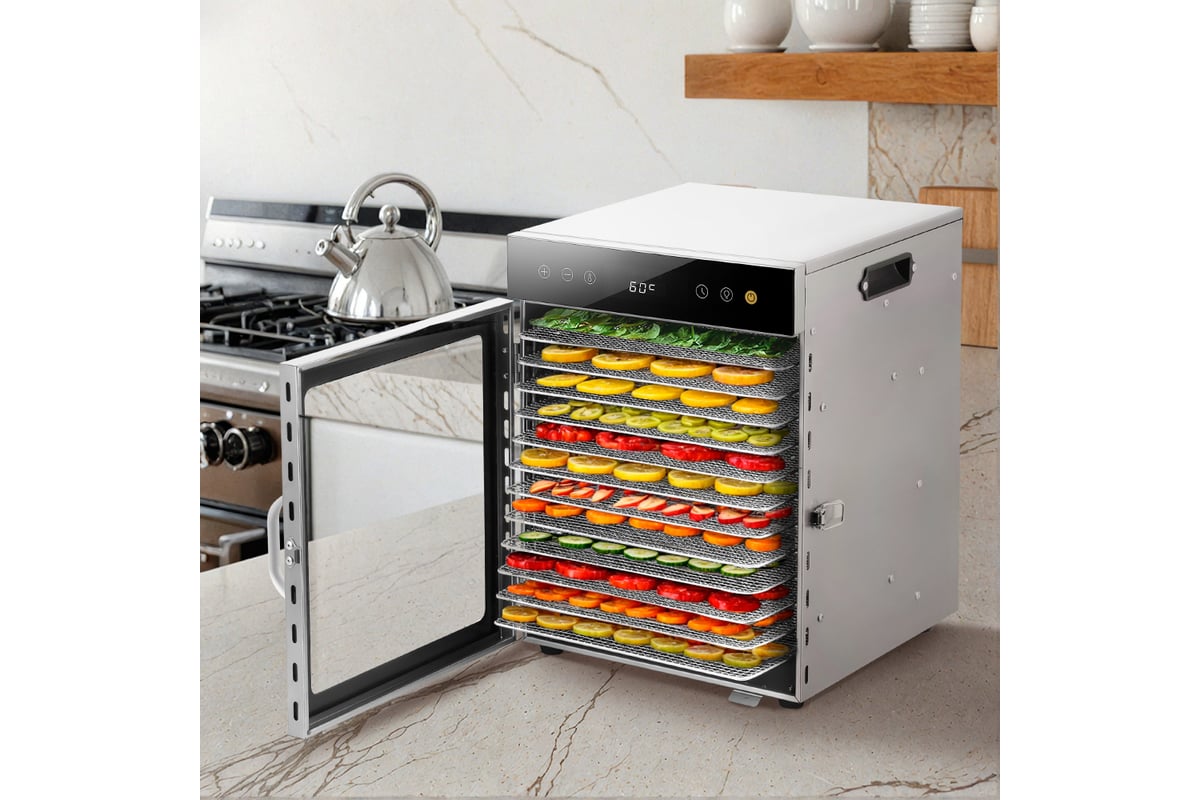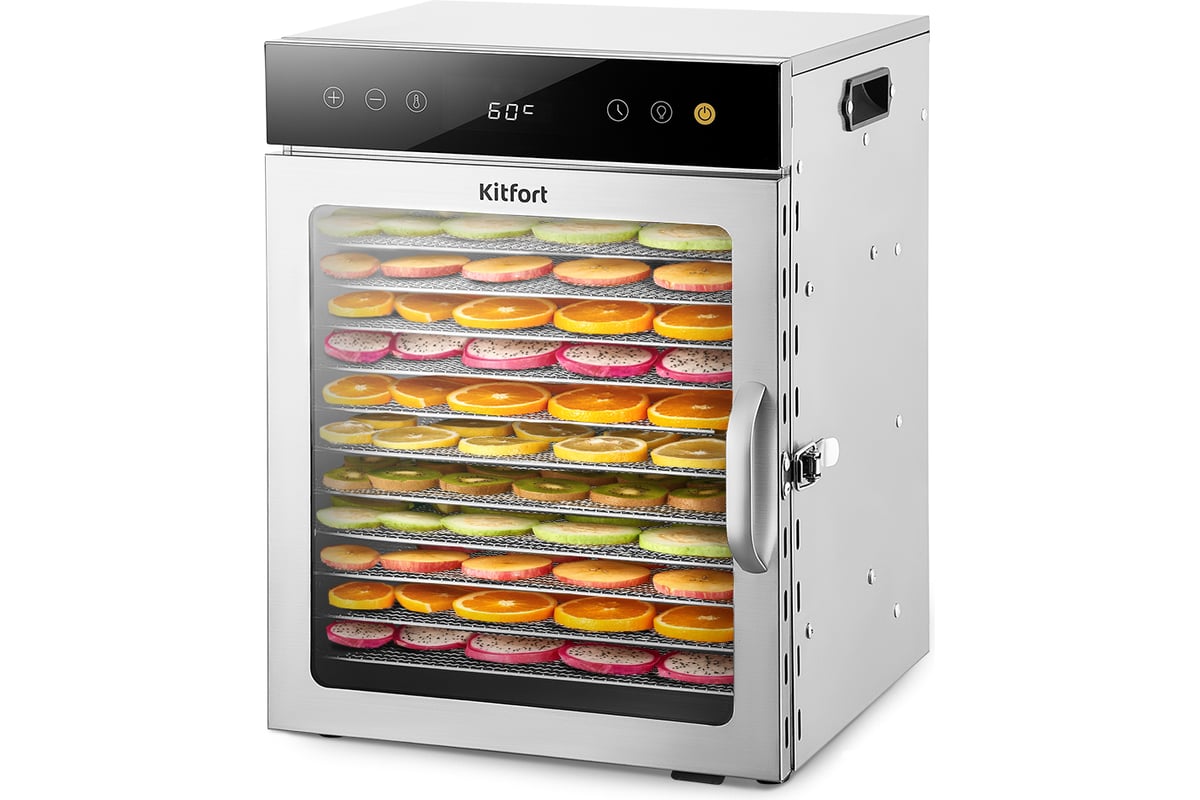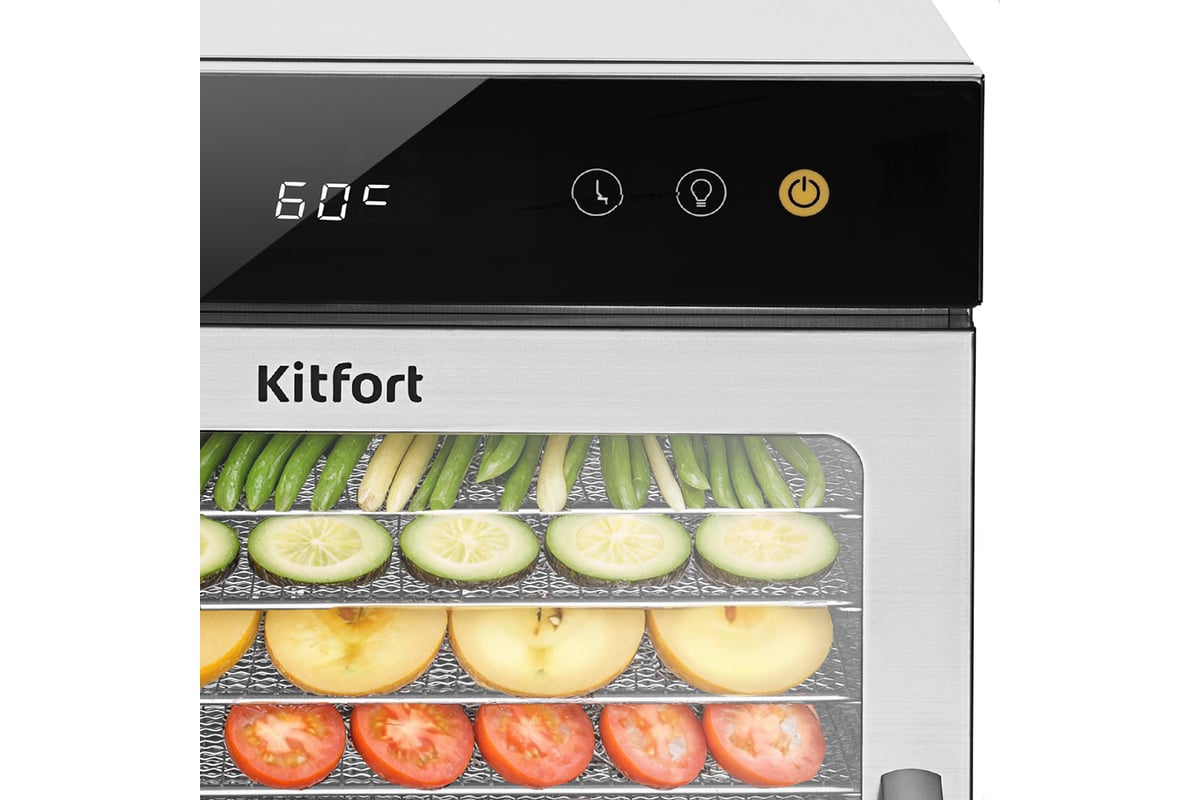 Электрическая сушилка для овощей и фруктов КТ-4927 предназначена для сушки овощей, фруктов, ягод, грибов, корнеплодов, трав и зелени, а также мяса и рыбы, хлеба.