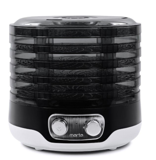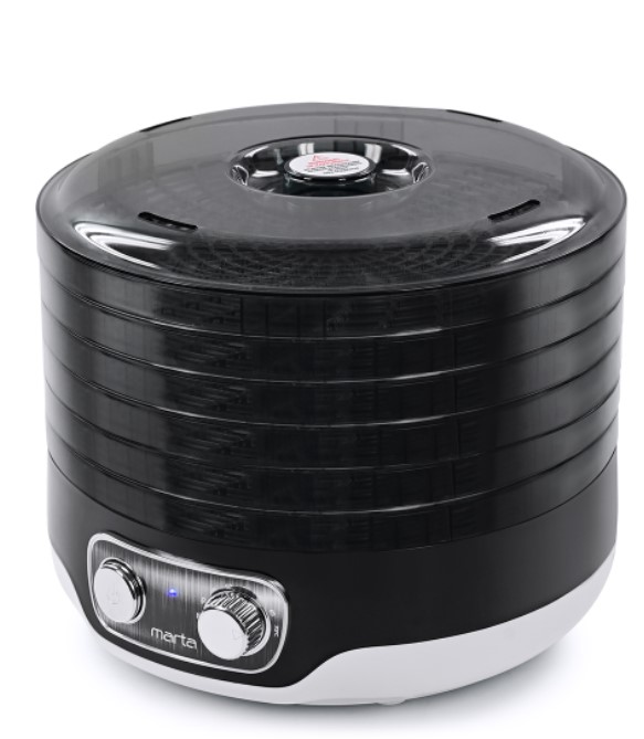 Сушилка для овощей и фруктов MARTA MFD-2052PS темный обсидиан 5 регулируемых по высоте поддонов, 2 поддона для пастилы