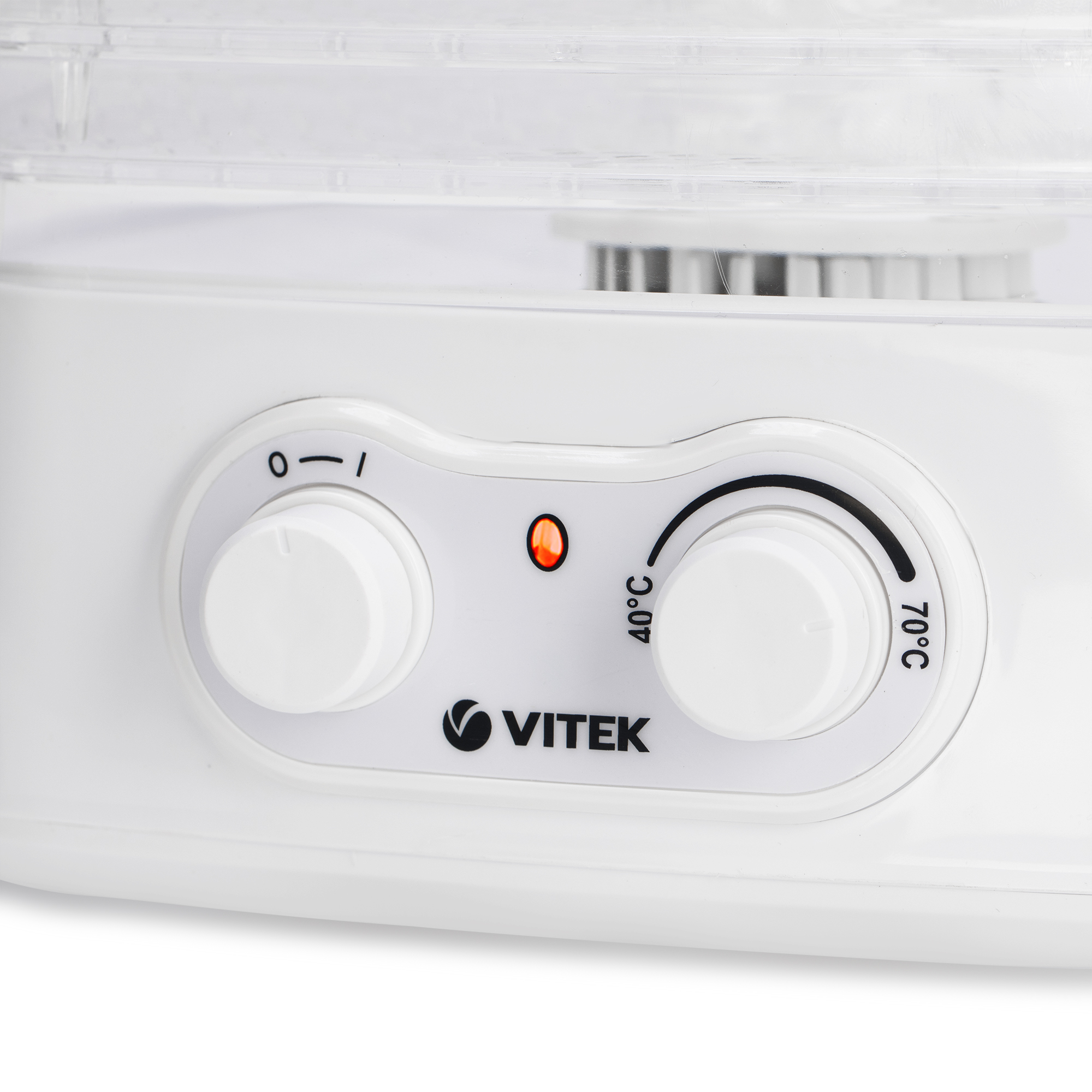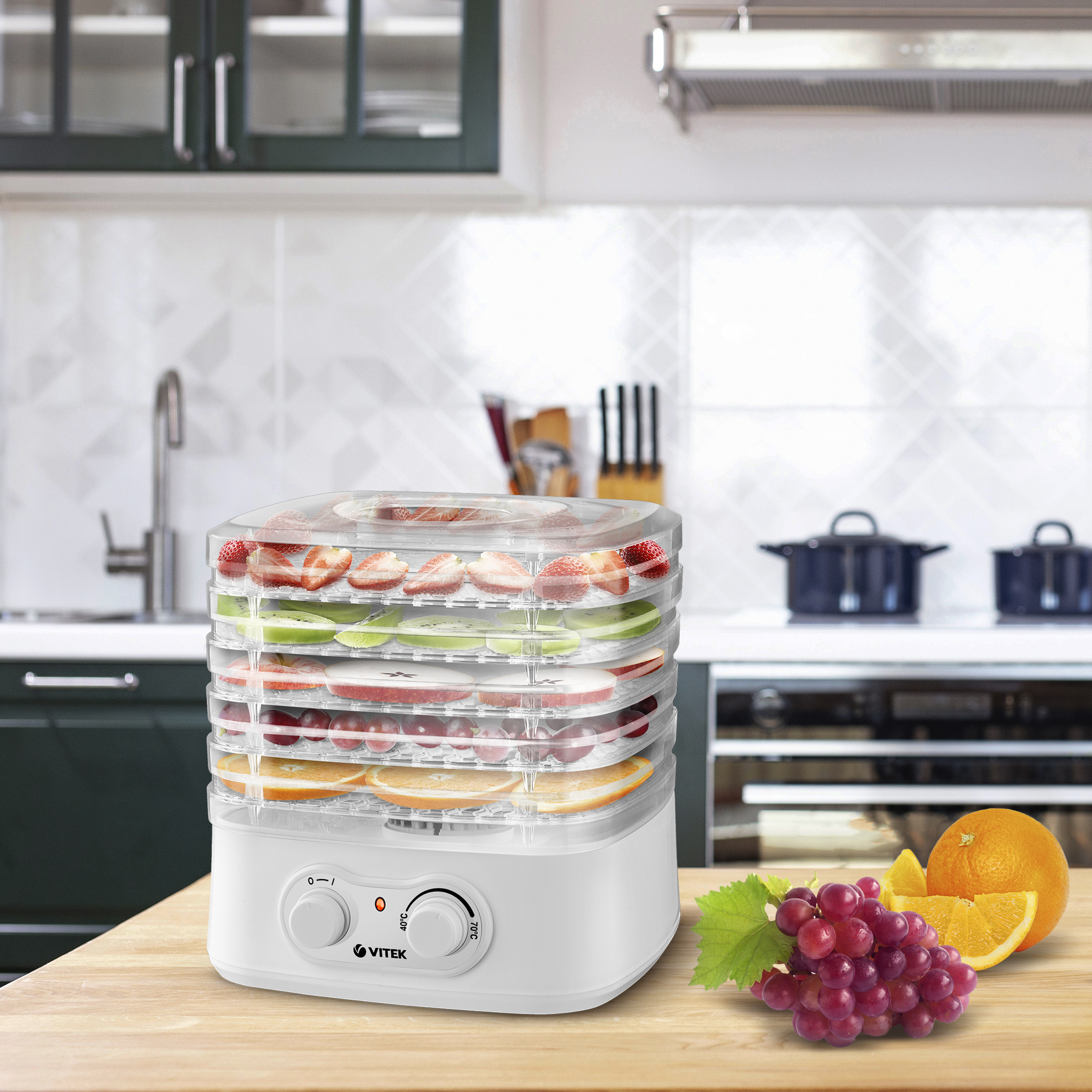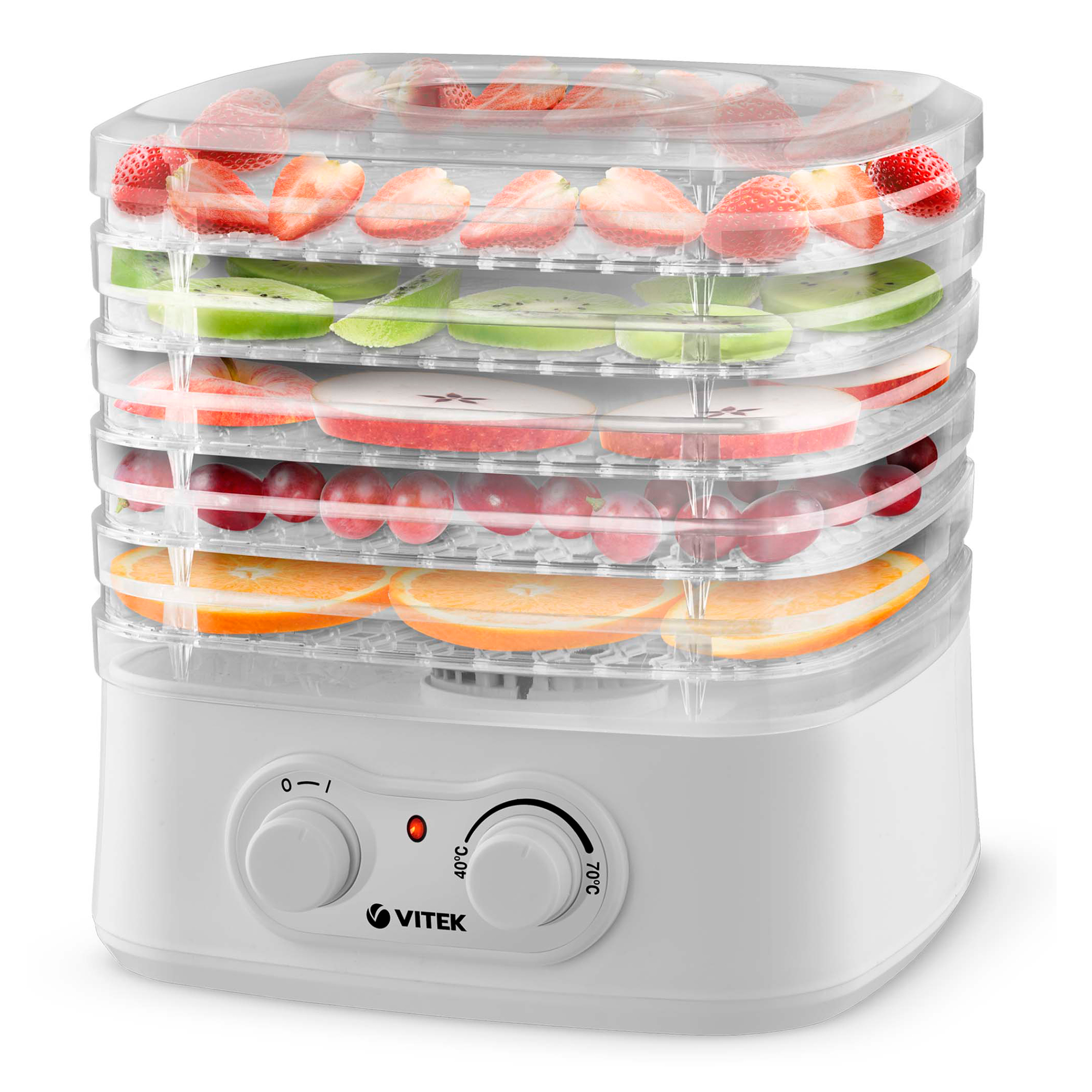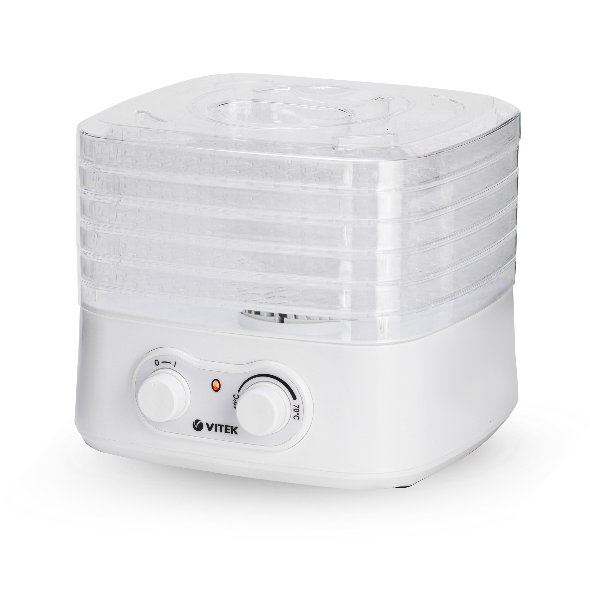 Сушилка для овощей VITEK VT-5066 объёмом 10 литров – отличный выбор, если вы любите домашние заготовки. Пять двухлитровых секций с горизонтальной загрузкой позволят вам делать сразу большой объем заготовок, а верхняя прозрачная крышка – контролировать ход процесса. Время сушки продуктов в первый раз правильнее всего выбирать, ориентируясь на инструкцию. В дальнейшем, вы сами отрегулируете время сушки в зависимости от своих конкретных условий, добиваясь оптимальной консистенции и вкуса в соответствии с вашими предпочтениями. Сушилка изготовлена из прочного пищевого пластика, что делает ее простой в уходе. Она также легко собирается и разбирается, а форма контейнеров позволяет компактно хранить прибор, так что он не займет много места.