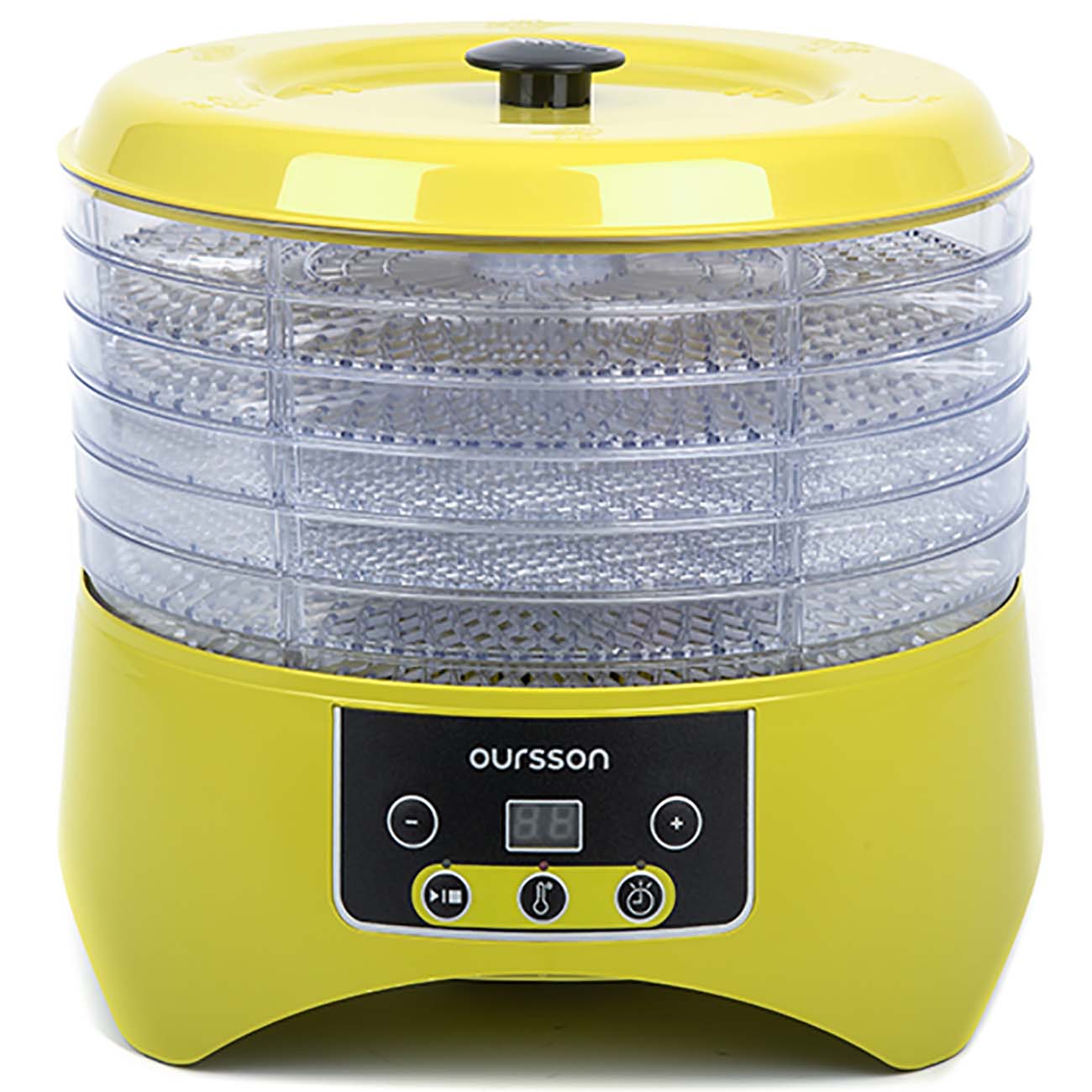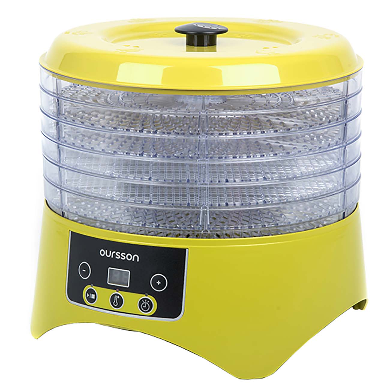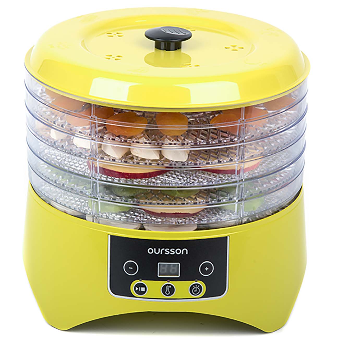 Дегидратор Oursson DH2302D – это электро-бытовой прибор, который поможет прекрасно справиться c заготовкой овощей, фруктов, грибов, вялением мяса или рыбы. Простое управление поможет выставить правильную температуру 38/48/58/68°С и время до 12 часов. Прибор изготовлен из безопасного BPA Free ABS пластика, имеет 6 вместительных лотка для сушки. Во время сушки или вяления из фруктов, овощей, мяса или рыбы испаряется излишняя влага, при этом сама структура клеток остается в целости, продукты сохраняют свой природный, естественный цвет, вкус и аромат, витамины, микроэлементы и ферменты.