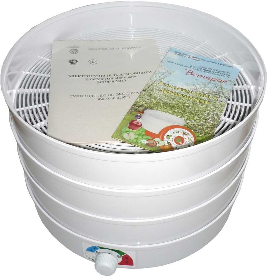 Всего за несколько часов в домашних условиях Вы можете произвести экологически чистую сушку: плодов, ягод, овощей, грибов, лекарственных растений, сушка и вяление рыбы. Позволяет загрузить до 3-х килограмм сырья.