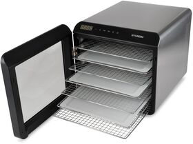 Сушильная камера в металлическом корпусе, с регулировкой температуры и таймером, для сушения овощей и фруктов, грибов и трав, а так же вяленья мяса и рыбы. Весь необходимый функционал, в удобном форм-факторе с сенсорным управлением.