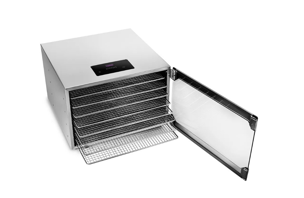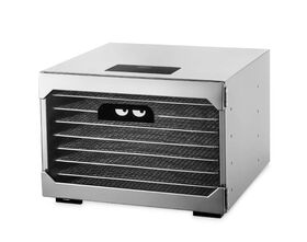 Электрическая сушилка предназначена для сушки овощей, фруктов, ягод, грибов, корнеплодов, трав и зелени, а также мяса и рыбы, хлеба. Сушилка имеет в комплекте 8 поддонов для сушки и 1 поддон для жидкости. Поддоны для сушки выполнены из нержавеющей стали. В сушилке установлен мощный нагревательный элемент и вентилятор большого диаметра, обеспечивающий равномерное распределение нагретого воздуха по всему объему камеры. Благодаря горизонтальному обдуву смешение запахов при сушке одновременно разных продуктов минимально. На сушилке можно установить температуру сушки в диапазоне 35–80 оС с шагом 1 градусов. Сушилка оснащена таймером до 24 часов работы с шагом 30 минут.