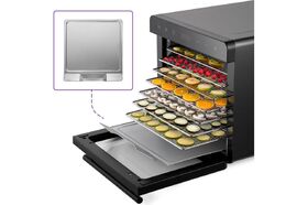 Равномерная сушка. Сушилка оборудована большим мощным вентилятором, что обеспечивает равномерный горизонтальный обдув всех поддонов. Поток воздуха направлен горизонтально, поэтому запахи продуктов с разных поддонов не смешиваются.