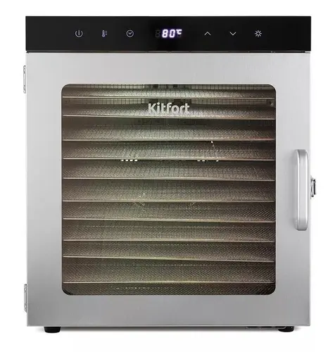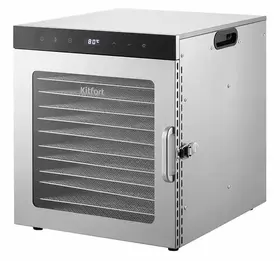 Вместительная сушилка для овощей и фруктов КТ-1951 на 12 поддонов и с прозрачной дверцей сохранит любимые фрукты и овощи полезными круглый год! Она насушит на всю зиму мясо, рыбу, помидоры, клубнику, персики, грибы, зелень, хлеб.
