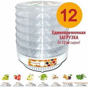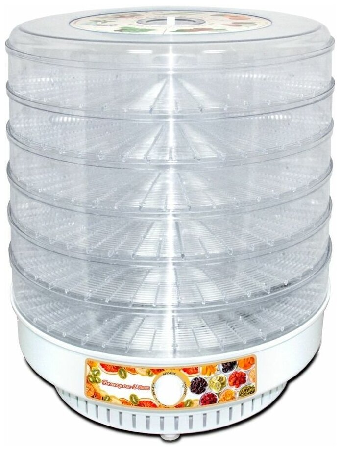 Сушилка для овощей Ветерок-2 Люкс (кол-во сит-6) в гофротаре+ 2 поддона для пастилы , 600 Вт, прозрачные уровни, крышка прозрачная+ нож для удаления сердцевины яблок
