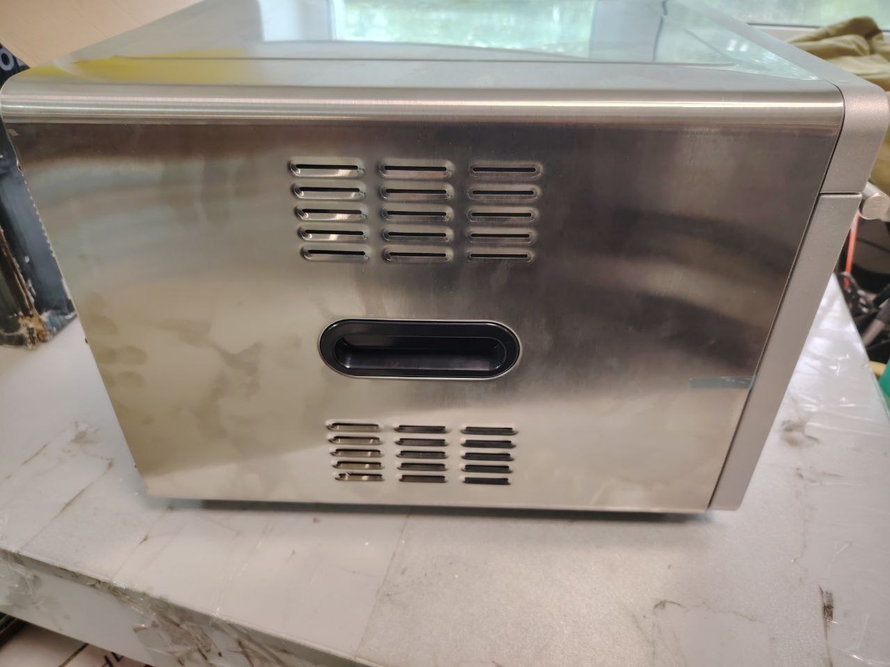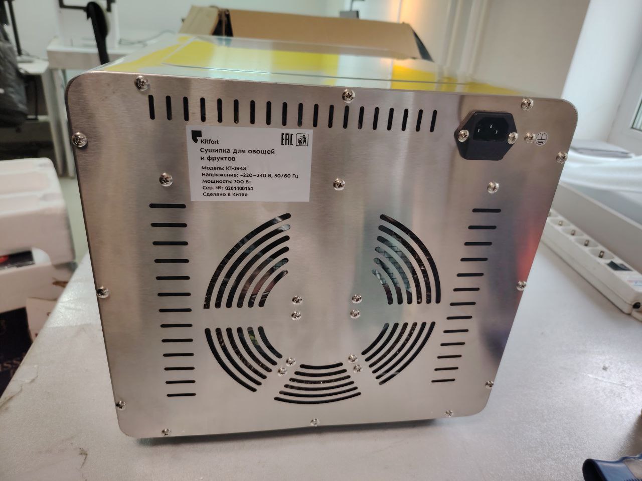 В сушилке установлен мощный нагревательный элемент и вентилятор, обеспечивающий равномерное распределение нагретого воздуха по всему объёму камеры. Благодаря горизонтальному обдуву смешение запахов при сушке одновременно разных продуктов минимально.