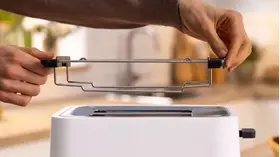 Дополнительные функции: автоматическое центрирование тостов, автоматическое отключение в случае блокировки хлеба, функция High Lift, контроль подрумянивания, подогрев, регулировка степени подрумянивания, регулировка высоты решетки, размораживание