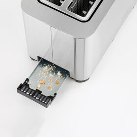 Корпус тостера выполнен из нержавеющей стали. В комплекте идет лоток для крошек, который позволяет легко убрать остатки хлеба из тостера и поддерживать кухонный стол в чистоте.