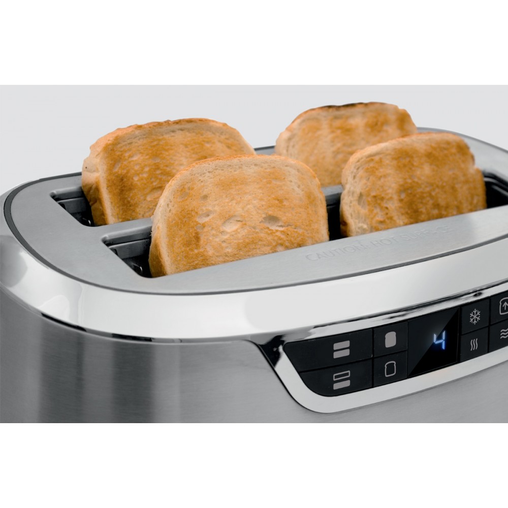 Тостер CASO Novea T4 для обжаривания ломтиков тостового хлеба, предназначен для использования в квартирах, частных домах, офисах и отелях. Рассчитан на одновременное поджаривание 4 ломтиков хлеба. По окончанию приготовления функция MotorLift плавно поднимает тосты. Данная модель оснащена ЖК-дисплеем с индикатором степени прожарки.