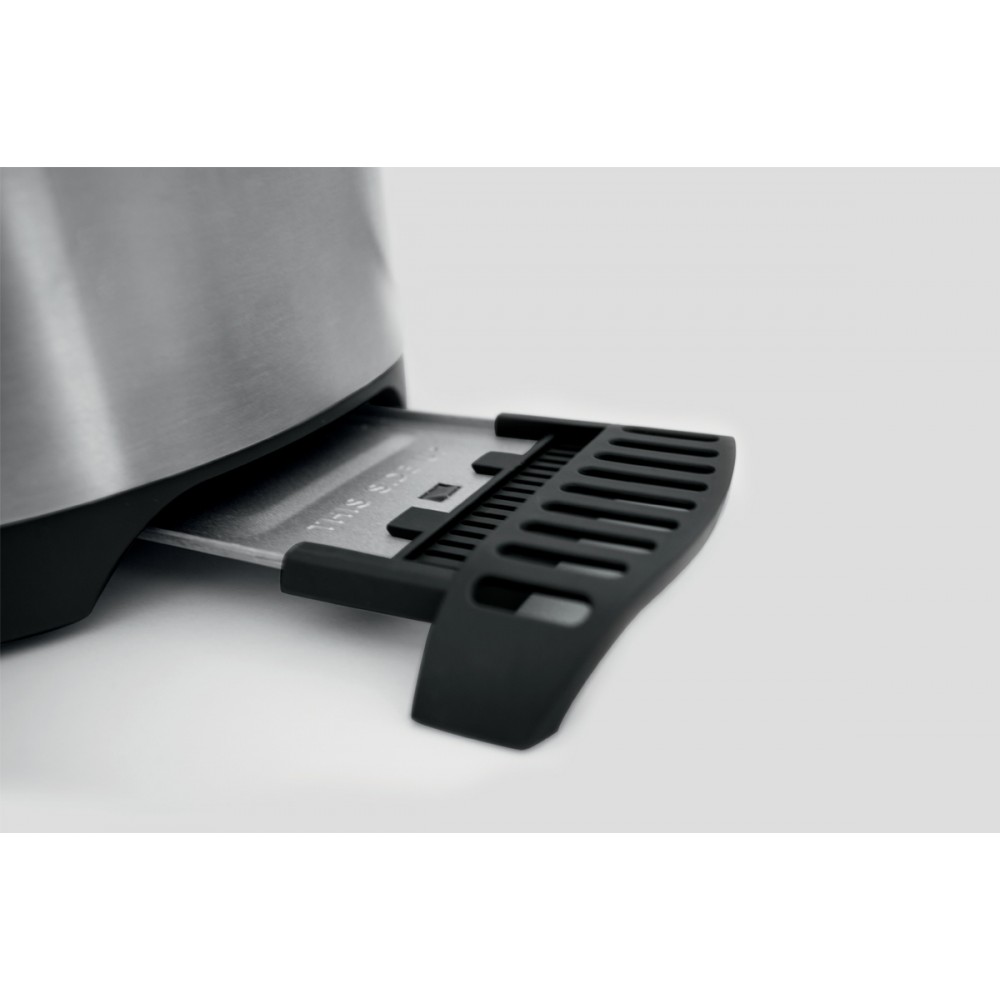 Корпус тостера выполнен из нержавеющей стали с наличием хромированных вставок. В комплекте идет лоток для крошек, который позволяет легко убрать остатки хлеба из тостера и поддерживать кухонный стол в чистоте. Имеется решетка для горячих бутербродов или подогрева других продуктов.