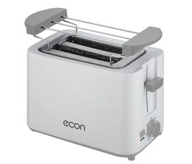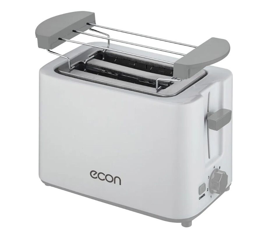 Стильный и лаконичный тостер бренда ECON мощностью 700 Вт на 2 тоста с 7 уровнями поджаривания, функцией подогрева булочек и функцией "Рисунок на тосте" станет вашим помощником на пути к идеальному завтраку. Термоизолированный корпус нашего тостера выполнен в белом цвете. Он прост в управлении и будет отлично смотреться как в классическом, так и в современном интерьере кухни. В комплекте с тостером поставляется металлическая подставка для подогрева бутербродов, булочек и других продуктов. Тостер имеет специальную конструкцию нагревательных элементов, благодаря чему во время приготовления он будет оставлять на тостах рисунок. С помощью 7 уровней поджаривания тосты могут иметь цвет от белого до коричневого. Если установить значение №3, то хлеб получится идеального золотистого цвета.