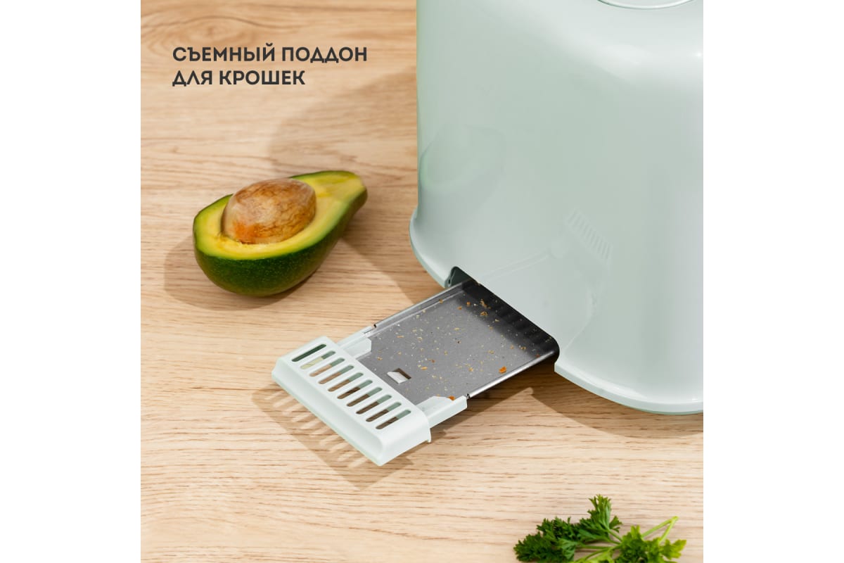 Хлебные крошки падают не на стол, а в поддон, который легко выдвигается и очищается.