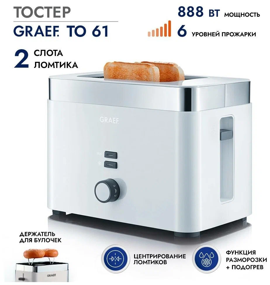 автоматическое поднятие тостов, автоматическое центрирование тостов, кнопка отмены, регулировка степени обжаривания