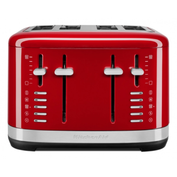 Тостер KitchenAid на 4 тоста, красный, 5KMT4109EER — это удобное устройство с простым в использовании ручным управлением и широкими отверстиями, обеспечивающими возможность поджаривания различных видов хлеба. Его металлический корпус обеспечивает долговечность и надежность, делая его идеальным выбором для повседневного использования.