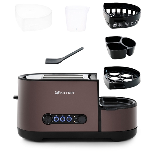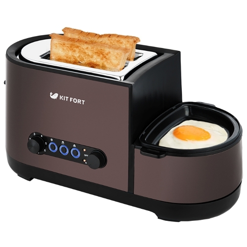 Электрический тостер Kitfort KT-2012 создан для тех, кто любит полакомиться ароматным, хрустящим, горячим поджаренным хлебом. Особый вкус и цвет корочки тостов получаются такими благодаря карамелизации сахара, содержащегося в муке, при инфракрасном нагреве в процессе приготовления. Это прибор «3 в 1»: тостер, съёмная сковорода с антипригарным покрытием, пароварка и яйцеварка.