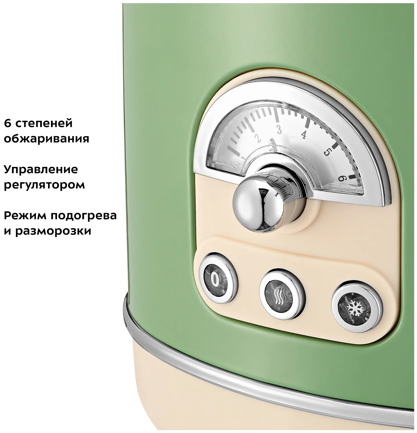 Дополнительные функции: регулировка степени обжаривания, кнопка отмены, автоматическое центрирование тостов