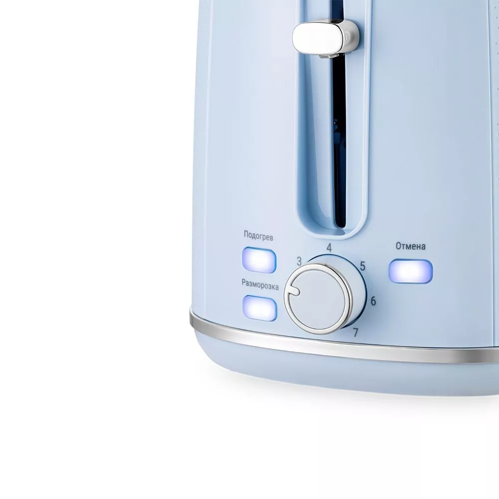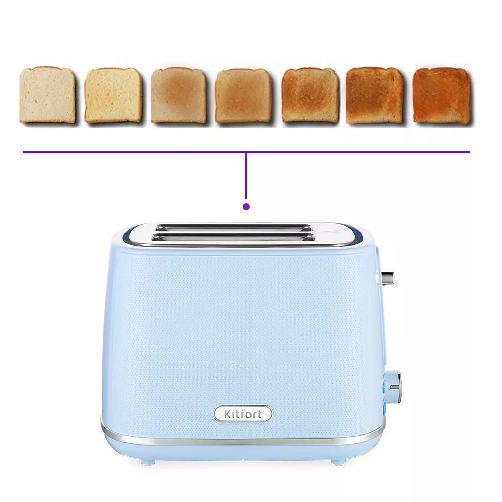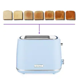 Тостер Kitfort КТ-6073 порадует вас не только приготовленными тостами, но и своим красивым дизайном – тостер выполнен в нежно-голубом цвете, он идеально впишется в интерьер вашей кухни. Вы можете приготовить сразу 1 или 2 тоста одновременно.