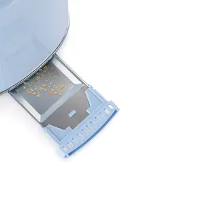 В нижней части корпуса тостера расположен съёмный поддон для сбора крошек. Просто выдвиньте его и выбросите скопившиеся крошки, а остатки протрите салфеткой.