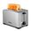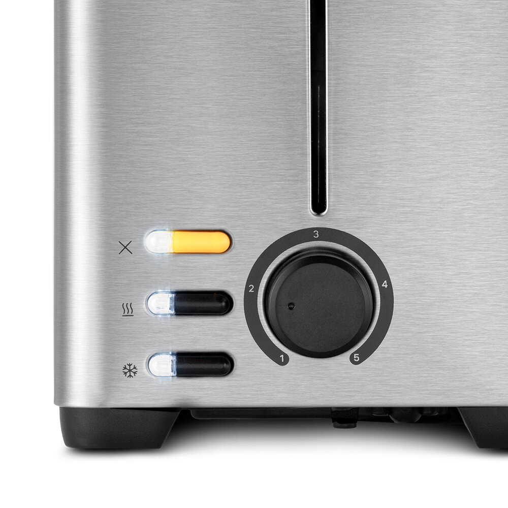 Тостер оснащен поворотным регулятором степени обжаривания и тремя кнопками со световыми индикаторами. Режим подогрева служит для подогрева уже готовых тостов, если они остыли, или подогрева холодного хлеба без обжаривания. Режим разморозки позволяет приготовить тосты из замороженного хлеба.