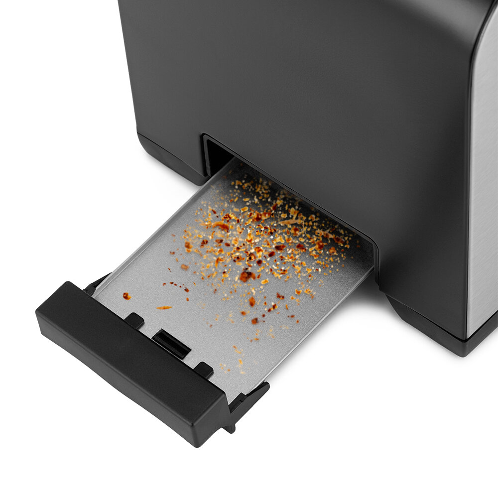 Снизу расположен съемный поддон для крошек, поэтому чистить тостер просто и удобно.