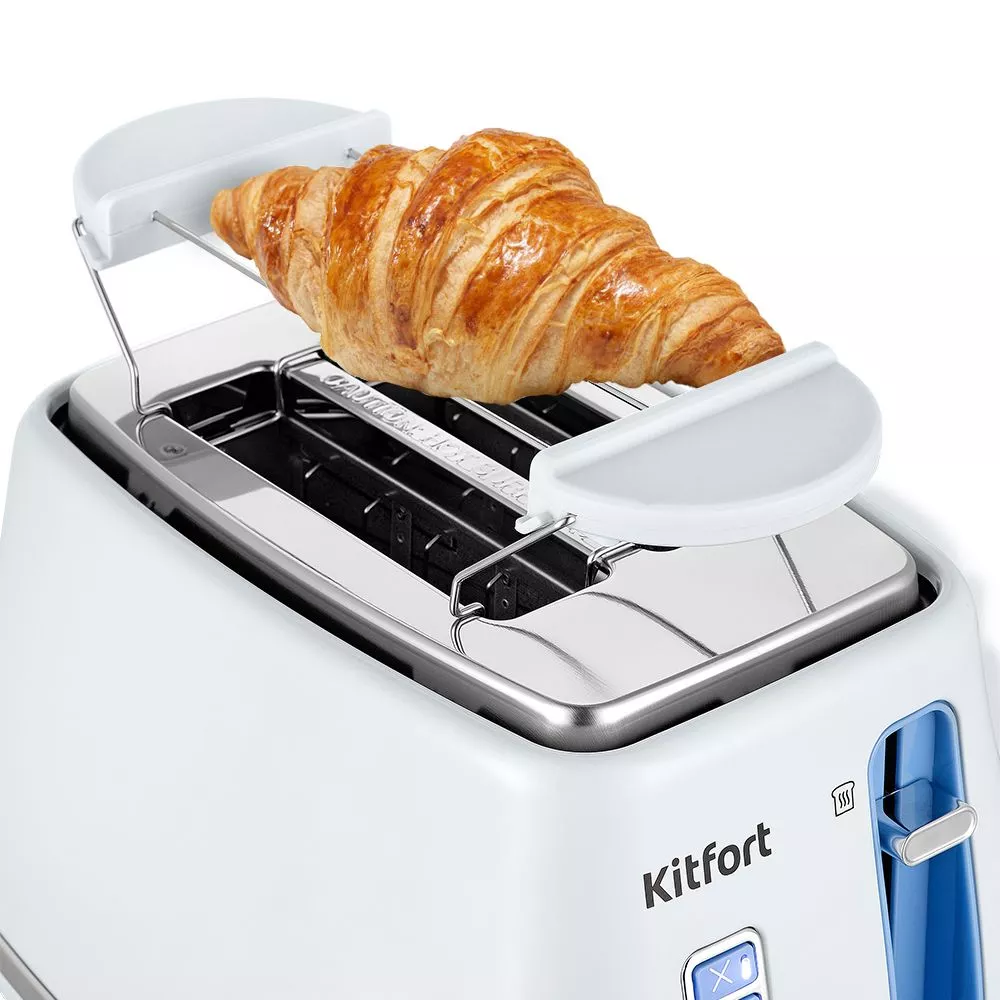 Тостер имеет специальную подставку для подогрева булочек, круассанов и других хлебобулочных изделий. Она съёмная и легко устанавливается на тостер.