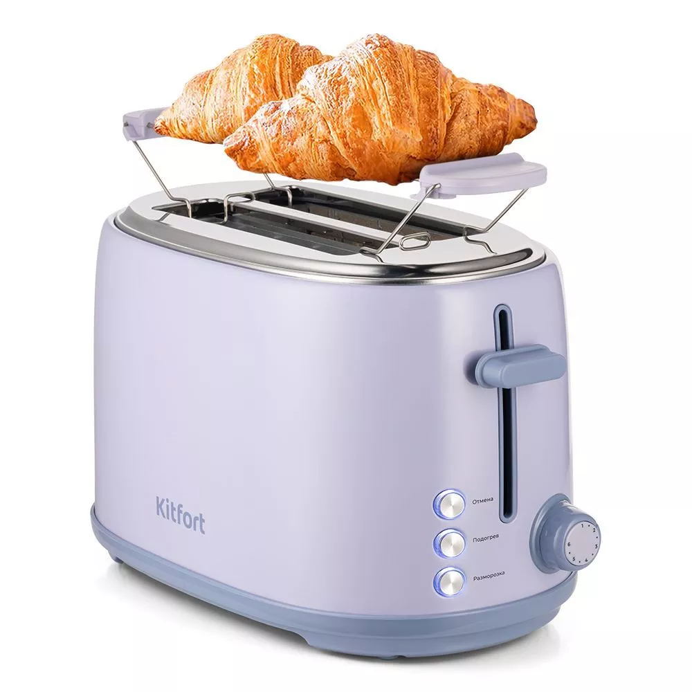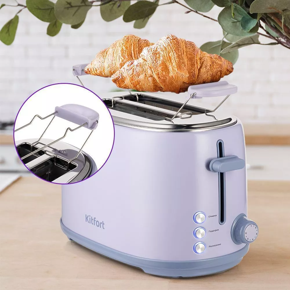 Тостер имеет специальную подставку для подогрева булочек, круассанов и других хлебобулочных изделий. Она съёмная и легко устанавливается на тостер.