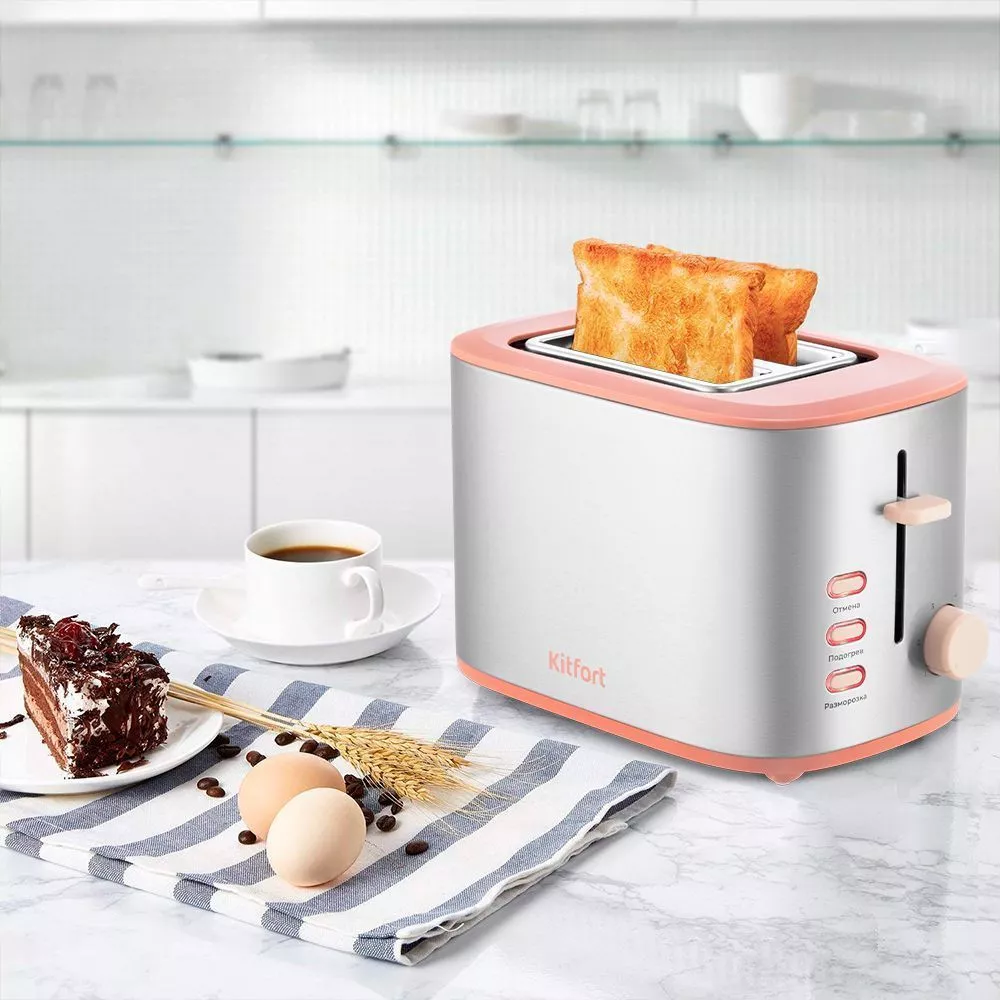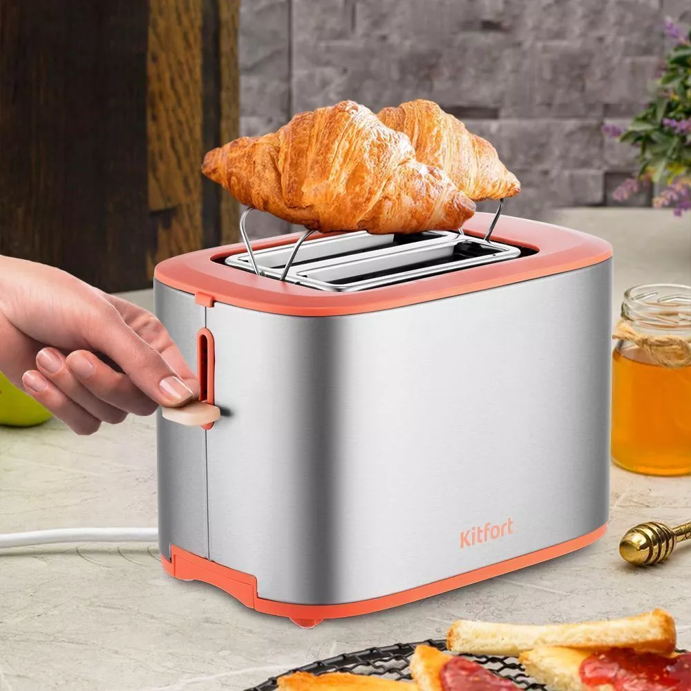 Тостер Kitfort КТ-6216 создан для тех, кто любит полакомиться ароматным и хрустящим хлебом. Особый вкус и цвет корочки тостов получаются такими благодаря карамелизации сахара, содержащегося в муке, при инфракрасном нагреве в процессе приготовления.
