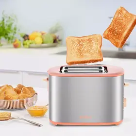 Загруженные тосты автоматически центрируются, чтобы их обжарка с двух сторон была равномерной независимо от толщины куска. Благодаря широким слотам можно поджаривать толстые куски хлеба, а не только тонкие.