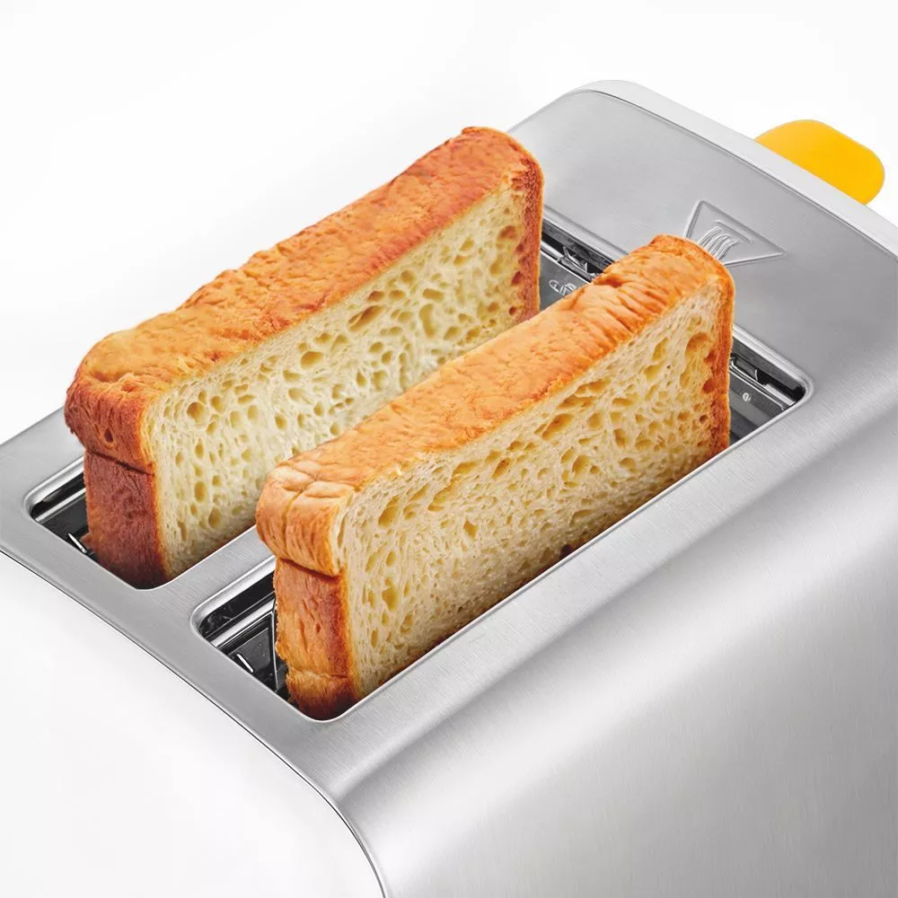 Загруженные тосты автоматически центрируются, чтобы их обжаривание с двух сторон было равномерным. По окончании приготовления тостер отключается, а тосты поднимаются вверх, чтобы их было удобнее извлечь. Вы можете приготовить 1 или 2 тоста одновременно.