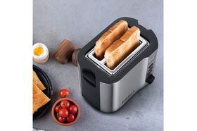 Тостер оснащен регулятором степени обжаривания и тремя кнопками со световыми индикаторами. Режим подогрева служит для подогрева уже готовых тостов, если они остыли. Режим разморозки позволяет приготовить тосты из замороженного хлеба. Загруженные тосты автоматически центрируются, чтобы их обжаривание с двух сторон было равномерным независимо от толщины куска. По окончании приготовления тостер автоматически отключается, а тосты поднимаются вверх, чтобы их было удобнее извлечь. Вы можете приготовить 1 или 2 тоста одновременно.